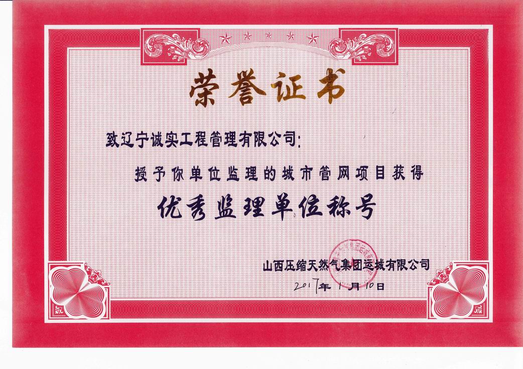 2017年山西壓縮天然氣集團(tuán)優(yōu)秀監(jiān)理單位