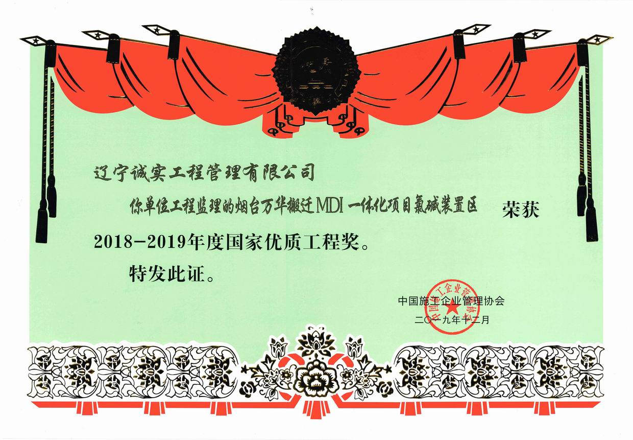 2018-2019年度國家優(yōu)質工程獎(煙臺萬華搬遷MDI一體化項目氯堿裝置區(qū))