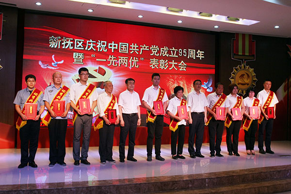 6月30日下午,新?lián)釁^(qū)召開慶祝中國(guó)共產(chǎn)黨成立95周年表彰大會(huì),對(duì)做出突出貢獻(xiàn)的先進(jìn)黨組織,優(yōu)秀共產(chǎn)黨員和優(yōu)秀黨務(wù)工作者進(jìn)行表彰。我公司被授予“先進(jìn)黨組織”榮譽(yù)稱號(hào),任潤(rùn)東被授予“先進(jìn)黨務(wù)工作者”榮譽(yù)稱號(hào),尋藍(lán)春、謝淑蘭被授予“優(yōu)秀共產(chǎn)黨員”榮譽(yù)稱號(hào)。