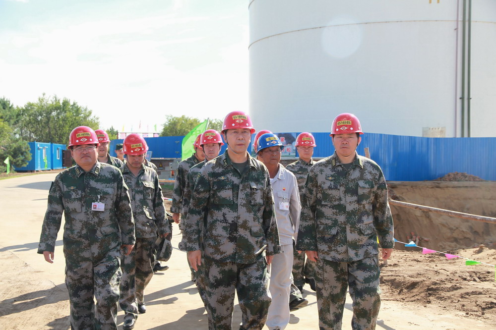 914油庫主任陪同沈陽軍區(qū)副司令鐘志明進行現場考察