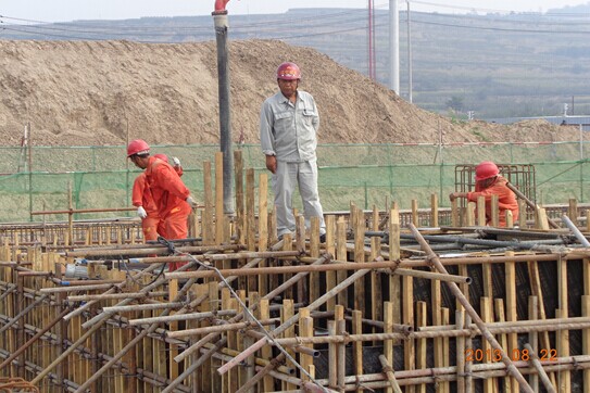 土建監(jiān)理現(xiàn)場檢查壓縮機廠房基礎環(huán)墻鋼筋綁扎質(zhì)量
